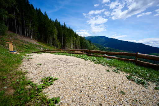 Bitte beachten Sie, dass aufgrund der Hanglage die Stellplätze nur für Camping-Busse und Wohnmobile gut erreichbar sind. Eine Anreise mit Wohnwagen (Anhänger) ist nur mit einem Allrad-Zugfahrzeug (z.B. Geländewagen, SUV, etc.) zulässig! Bei der Anfahrt muss die Koralpen-Höhen-Straße (steile und kurvenreiche Bergstraße) mit einer Länge von 8km passiert werden. Übergroße Fahrzeuge können nicht zufahren. Bitte beachten Sie unsere Kapazitätsgrenze von maximal 10 Campinggästen. Eine Buchung oder telefonische Voranmeldung ist für eine Anreise zum Campen verpflichtend notwendig. Rufen Sie uns im Vorfeld an und Informieren Sie sich über Zufahrt und Verfügbarkeit der Stellplätze.