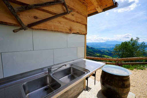 Die terrassenförmige Anlage gewährleistet einen atemberaubenden Ausblick über Südkärnten.