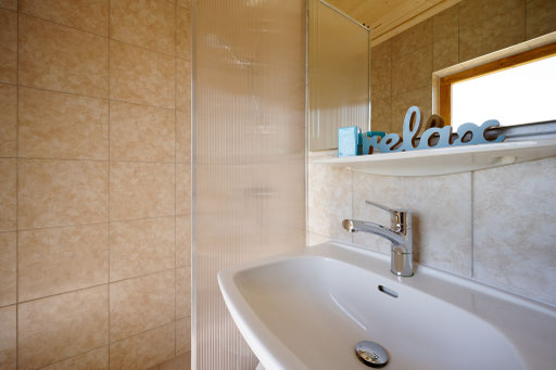 Schöner Sanitärbereich mit Unisex Toilette und Dusche